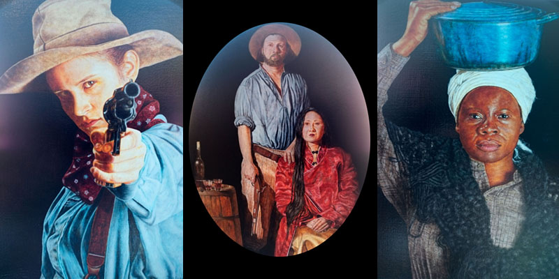 NOW ON EXHIBIT: 3 paintings by Eugene Rodriguez, from his series Forgotten People of the Gold Rush. Using oil and wax, the artist has created crisp images whose deep colors startles the viewer with their lively presence, jolting us into the past... |